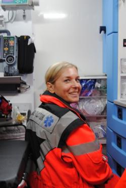 Zdravnica pregleduje opremo reševalnega vozila